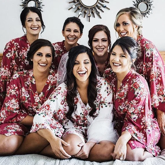 Matching robes or pajamas are always a great way to go -- plus they are usually loose around the neck so they won't mess up anyone's hair when changing into their dresses.