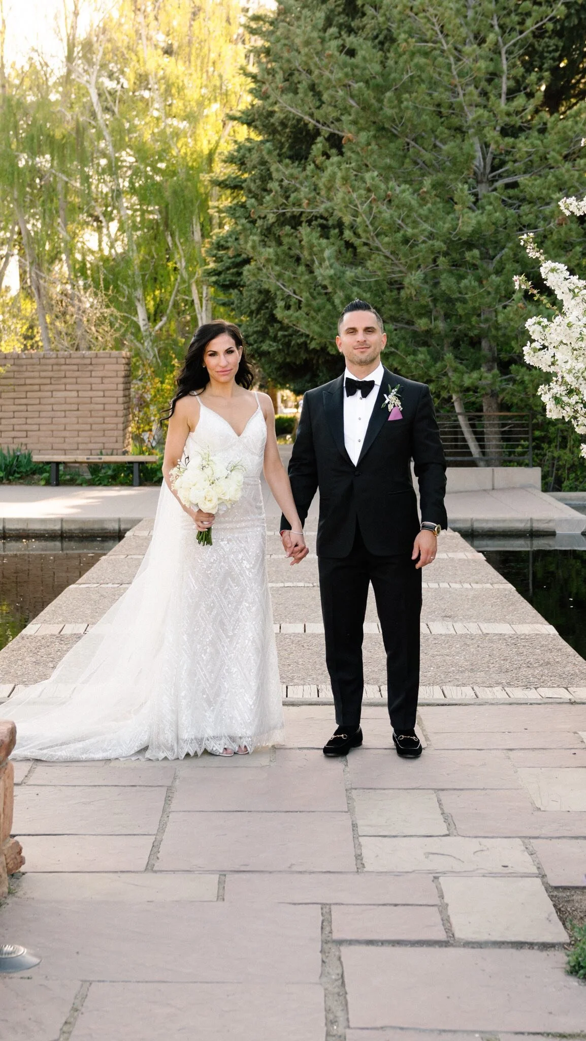 Victoria and Nick chose to wear formal wedding attire with appropriate shoes for hiking. Victoria carried a boho-style bridal bouquet, and Nick wore a matching boutonniere. They also had an adorable matching dog collar made for Aila. I love when couples incorporate unique nuances into their wedding day to make it more authentic.